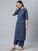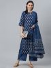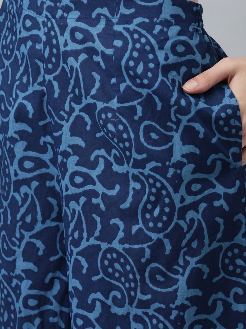 Blue Printed Rayon Straight Kurti With Palazzos & Dupatta