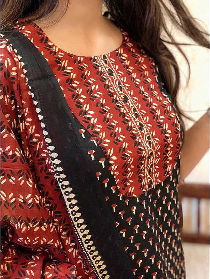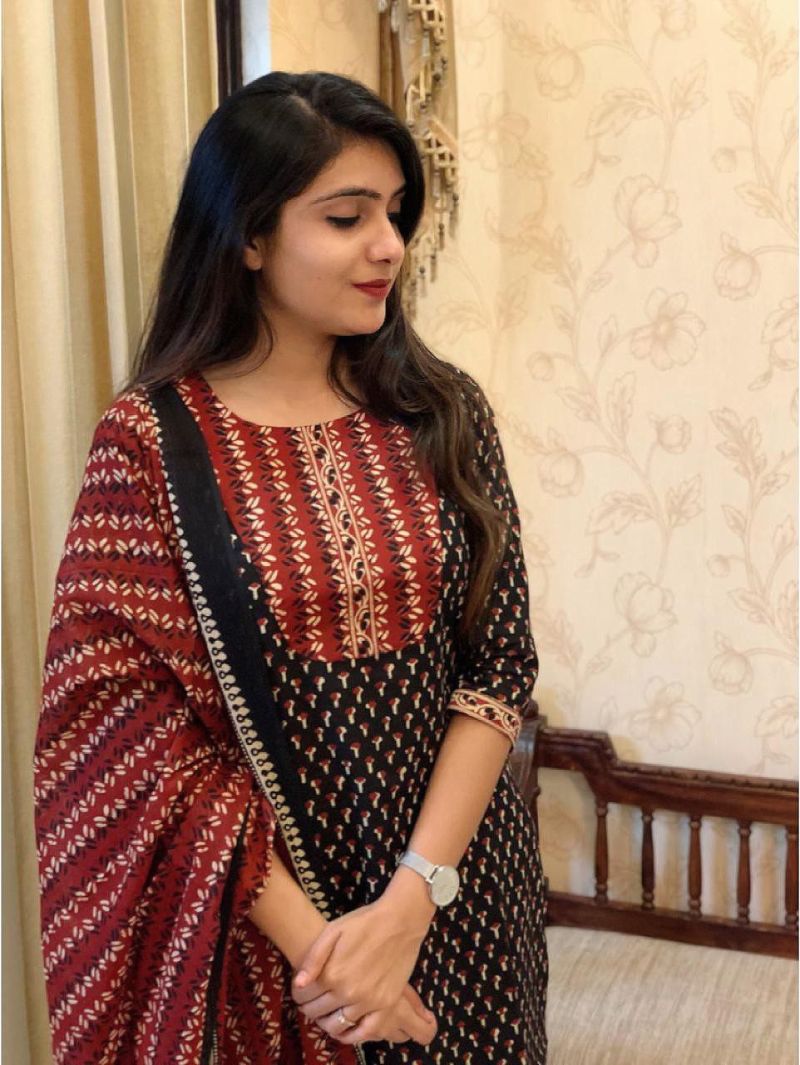 Rayon WOMAN printed A-line KURTi SET with dupatta