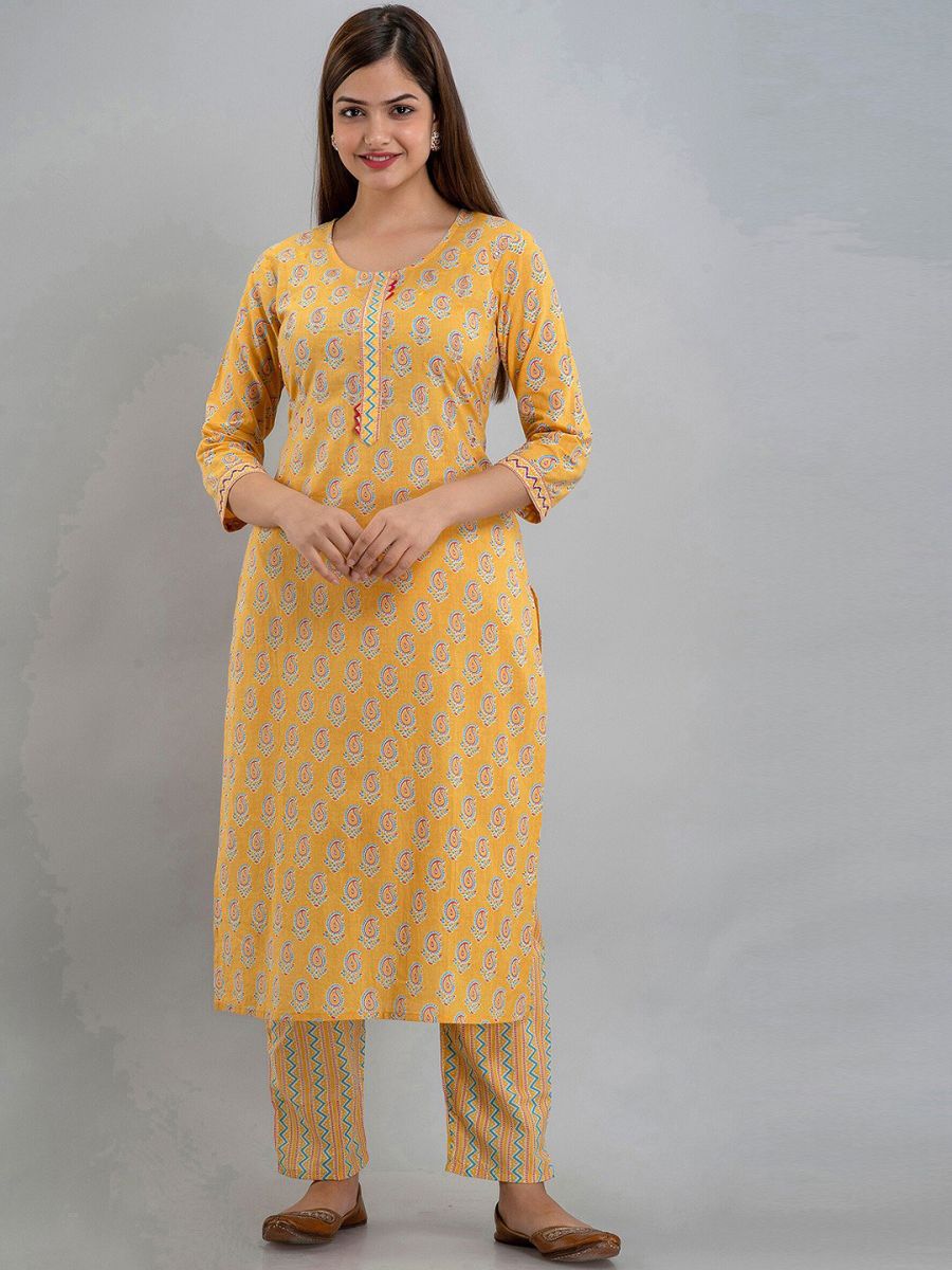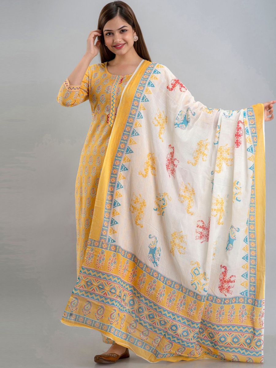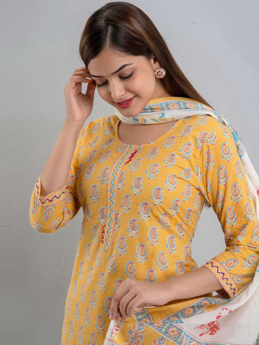 Women's Mustard Color Poly Rayon Kurta Pant Set With Georgette Dupatta